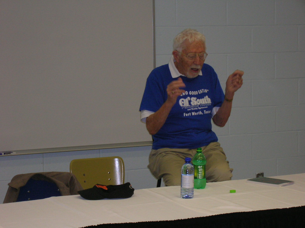 Picnic, Hal is welcomed into the community and told when the local bible study meets, taking it as a matter of faith that he is both a Christian and a Baptist.